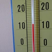 (日中の廊下の温度計 13度) (午後、雨が降り出しました)
