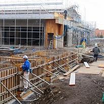 (1階廊下が 杜になりました)(東小 屋根コンクリート打設工事)