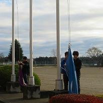 (生徒会役員 国旗掲揚のようす) (1階廊下 クリスマス気分に)