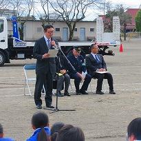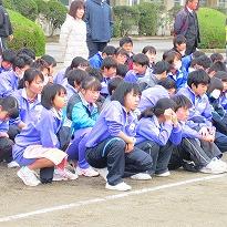 ●校庭には全生徒と約30名の地域の方々も参加して実施されました。とちぎテレビと下野新聞の取材が入っていました。