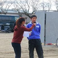 (海外派遣事業報告会 「スル」を巻いて報告する団員たち)