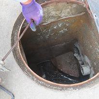 (職員トイレ 排水のつまりを調べています)