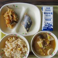 (今日の給食 秋味覚汁他) (お昼の空模様)
