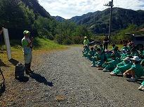 ●昼食後、「松木渓谷」に向かうことになっていましたが、先日の大雨の影響で道路の陥没等があり、渓谷入り口の広場で「足尾まるごと井戸端会議」の山田さんから説明を受けて帰ってきたそうです。