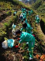 (足尾の植樹風景) (昨年植樹した隣に植樹を)