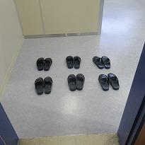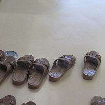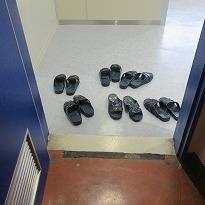 (生徒下駄箱 整然と並んでいます)(一つだけがかかと潰れが・・・)