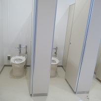 ●校内の改修では、西側トイレの改修工事をしています。便器は取り付けられ今は、ブース(間仕切り)を取り付けています。