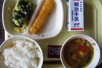 (今日の給食 豆腐となめこ汁 他)(雲が多い中、風が吹いていました)