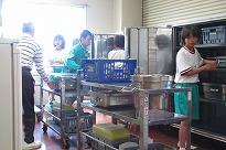 (給食委員会 片付け風景) (駒場先生 部活の部長を集めました)