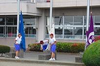それぞれの学年とも、大きな声で号令や駆け足行進の号令をかけていました。外は少し暑さを感じますが、どの生徒たちも集中と気合いを入れて練習していました。