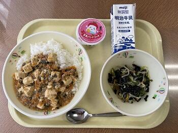 マーボー丼 チョレギサラダ 豆乳パンナコッタ(いちごソース)