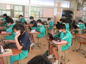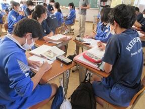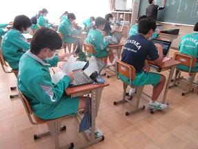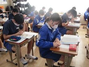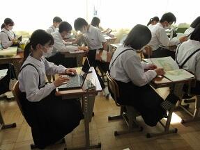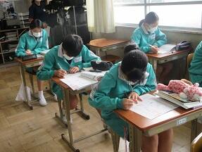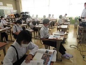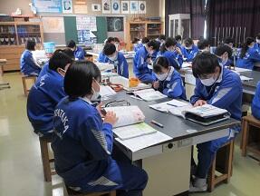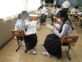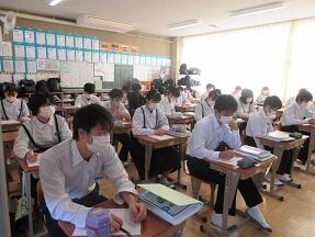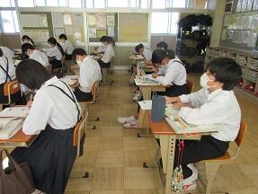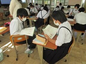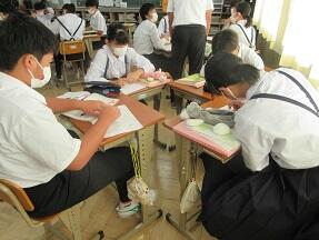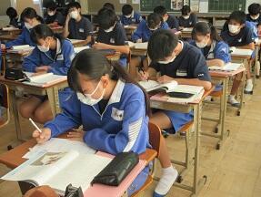 古文を現代文に直して平家と源氏の様子をまとめる授業が展開されていました。なかなか難しい授業ですが、必死に取り組んでいました。