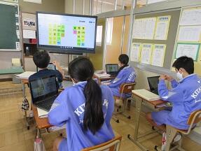 葉のつくりと働きについてまとめていました。電子黒板が効果的に利用され、生徒たちはわかりやすかったと思います。