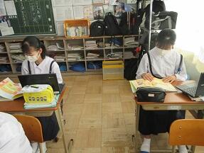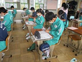 今日の1校時に、全クラスの授業を見てきました。どの授業も、コロナ感染症予防対策をしっかり実施しての授業でした。