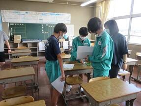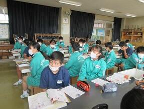 中国、四国地方で調べたことをグループで発表していました。グループの形や時間を気にしながら感染症対策しながらの実施でした。