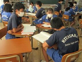 少人数で実施している英語ですが、どちらのクラスも本文の内容理解をやっていました。どちらのクラスもみんな真剣に取り組んでいました。
