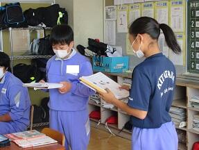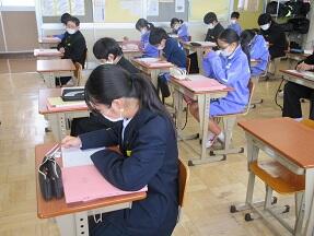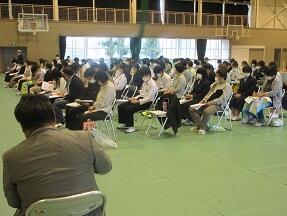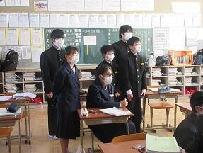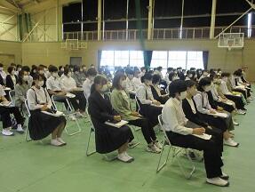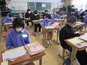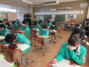 今日、来年度入学予定の町内の小学6年生が本校を訪れ半日体験を実施しました。全体説明の後に、授業を見学して、学校説明や部活動説明を受けました。みんなとても緊張しているようでした。