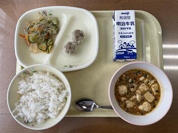 麦ごはん ポーク焼売 春雨サラダ マーボー豆腐