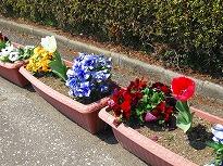 (玄関前のプランターにはチューリップが咲き始めました)