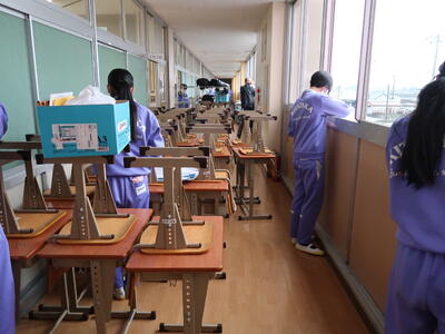 【実力テストの様子】1時間目は1・2年生とも「国語」の問題です。