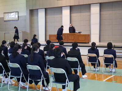 【卒業式練習】本校では一人一人に卒業証書を手渡します。証書のもらい方や礼の仕方など、とても緊張していました。