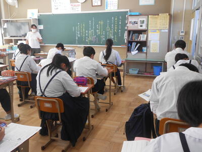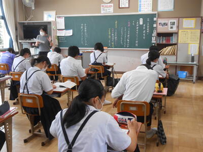 1年3組「英語」中間テストの振り返りを行っていました。1年生の問題が基本です。しっかり覚えましょう。