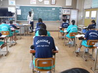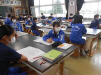【東小学校入学説明会】午前中に東小学校の児童対象に「中学校入学説明会」を行いました。1年生の授業を参観した後、東小卒業生の先輩から中学校の生活や今のうちにやっておくことなどの説明がありました。