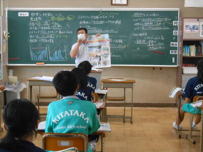 2年2組「理科」気団と低気圧について学んでいました。どのような状況で雨が降るのかをしっかり理解していました。