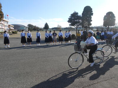 【一斉下校】毎週水曜日は「一斉下校」の日です。校門から全員が下校します。自転車通学者は間隔を取りながら1列で左側を下校するようにしていますが、車の通りが少ないところでは並進しているようです。いつでも、どこでも1列で安全に気をつけて登下校してほしいです。下校の様子をご覧ください。