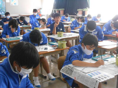 3年1組「美術」空想画の作品つくりです。各自が空想の世界を描いていました。