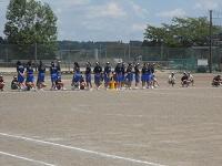 試合前のあいさつ、相手チームと同じようなユニホームでした。