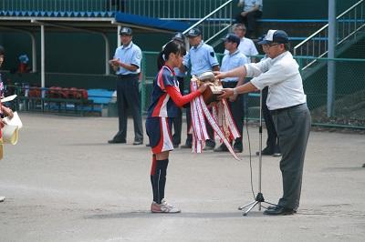 【体育祭全体練習】 体育祭の練習に先立ち、過日行われました「県春季ソフトボール大会優勝」の表彰(伝達式)を行いました。
