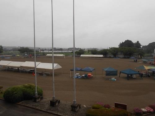 現在の天気予報では、この雨は夕方まで降り続け、明日の午前中は曇り、昼頃から雨の予報です。この状況であれば「実施」したいと思います。競技内容の変更や終了時刻の変更等も予測されますので御了解願います。また、生徒の着替えなども多めにご準備をお願いします。