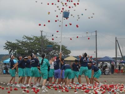 騎馬戦(男子種目)の練習です。女子が応援してくれました。