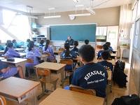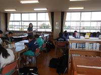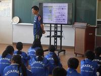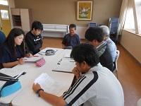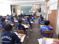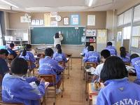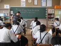 【海外派遣説明会】 昼休みの時間、「海外派遣事業説明会」が行われました。町関係者から趣旨の説明と海外(フィジー共和国)の説明を聞きました。また、昨年度参加した3年生から体験談を聞きました。本年度8月18日から23日までの4泊6日で実施されます。希望者は申込書を早めに担任に提出ください。