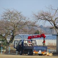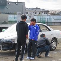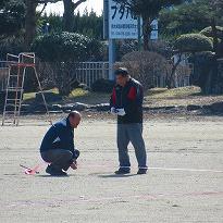 (校庭に駐車場のライン張り 教頭と久郷先生2人で)