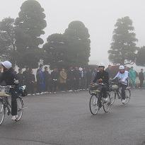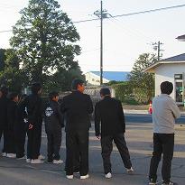 ●登校時、男子ソフトテニス部が「霧」の中でも、登校してくる生徒たちに大きな声であいさつしていました。