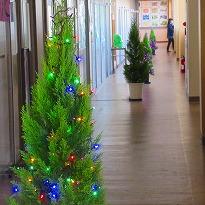 (今日の給食 サンマのみぞれ煮他) (1階廊下 クリスマスツリー)