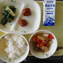 (今日の給食 けんちん汁 他) (お昼 強い風と青い空)