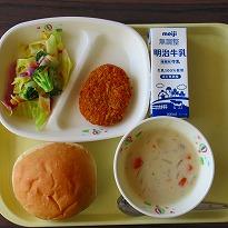 (今日の給食 野菜コロッケ 他) (お昼の空模様)