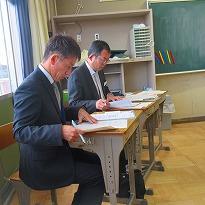 ●その後、学年ごとに分かれて会長と副会長選挙の「投票」を、衆議院(参議院や町長、町議員)選挙の投票と同じようなスタイルで行いました。