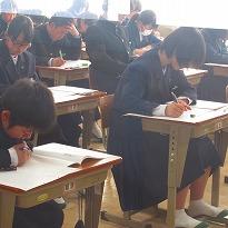 〇実力テストに挑戦・・・・・・2年と1年は1年先、2年先の県立高一般入試に備えて、シュミレーションの意味もあり、校内「実力テスト」(5教科)に挑戦していました。