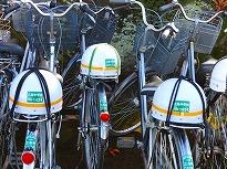 (公園内に三島中生徒の自転車 ヘルメットを十文字にくくりつけ並んでいました)