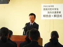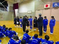 ●校長からの激励の言葉を短めに話させていただきました。 これまでの長かった練習の成果を明日の大会で発揮してほしいと願っています、と伝えました。