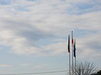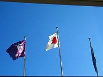 (玄関に小さな門松が) (国旗掲揚塔から 今日の青空)
