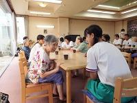 〇ひよこの家を見学・・・・・・「ひよこの家では、この3日間を登校日として、体験活動を実施しています。今日の午前中は、「藍染め」。昼食には「流しそうめん」。夕方から夜には「スイカ割り」と「花火大会」があります。