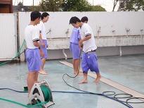 〇プール清掃・・・・・・午前中、2年男子が1時間、プール清掃をしていました。関谷先生の指示にしたが、肌寒い中ですが楽しそうにやっていました。 高圧洗浄機(我が家から持参)も使えるので、例年よりスピードアップで、きれいになると思います。