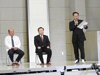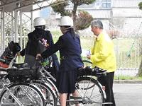 〇生徒会「あいさつ運動」・・・・・・今朝は、生徒会役員が登校時、「あいさつ運動」をしていました。 また、登校時「自転車の安全運転」のチラシ配布のために、町地域安全課の職員が来校し、1年生に声をかけ、チラシを配布してくださいました。