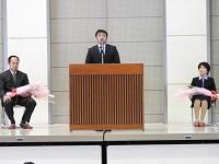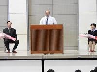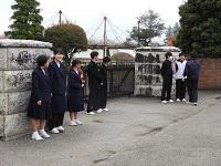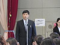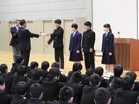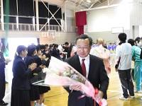 式は、校長のはなし、生徒代表亀田さんのお別れのことば、花束贈呈、離任者あいさつ、校歌を歌って閉会となりました。退場は、生徒たちが通路を作りお見送りをしました。