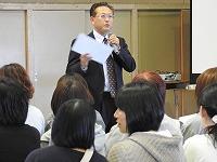 校長あいさつでは、約10分間、自己紹介からはじまり、北中の学校評価からの課題を説明、今年度の北中の「グランドデザイン」についての概要と協力をお願いしました。 保護者の皆様も北中作りのスタッフですので、よろしくお願い申し上げます。